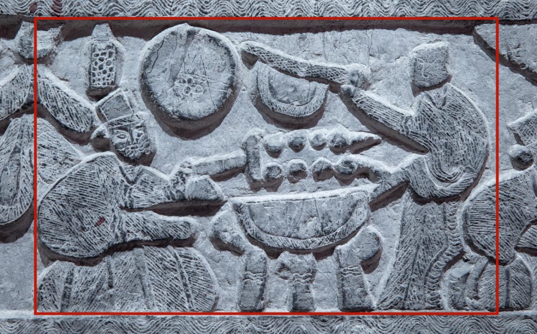 △ Linyi Wulibao Han stone relief-"Kitchen Map", there is also a picture of two people barbecuing, one of them barbecuing and the other holding a fan.
